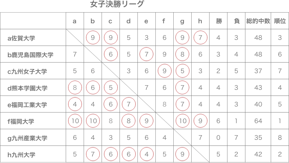 | 結果 | 【女子団体の部】 団体4位 (総的中数43中、4勝3敗)